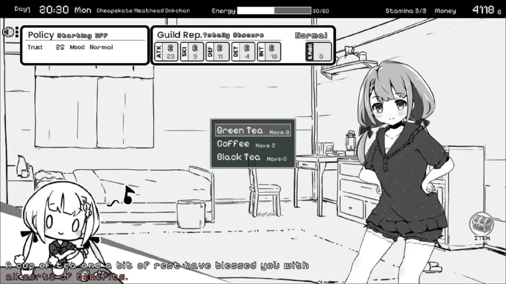 Your day is split into clear segments: Morning, Afternoon, and Night. Each segment allows for one primary activity. The core loop is deceptively simple: work at the guild for money and stats during the day, then spend your evenings at home with your sister. But within that framework lies immense depth. Choosing between a high-paying quest that drains your stamina or a training session that builds a crucial stat is a decision you’ll face daily.