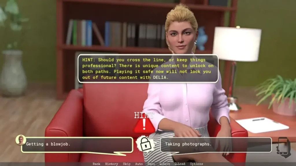 1. Accept Her Offer: When Delia proposes her “alternative therapy,” you must say yes. This is the non-negotiable gate.