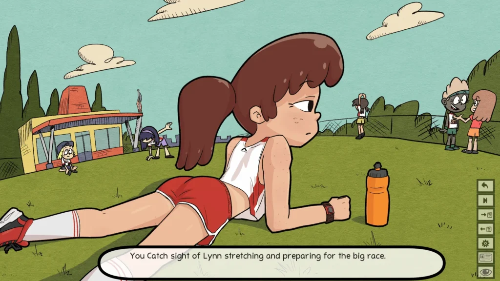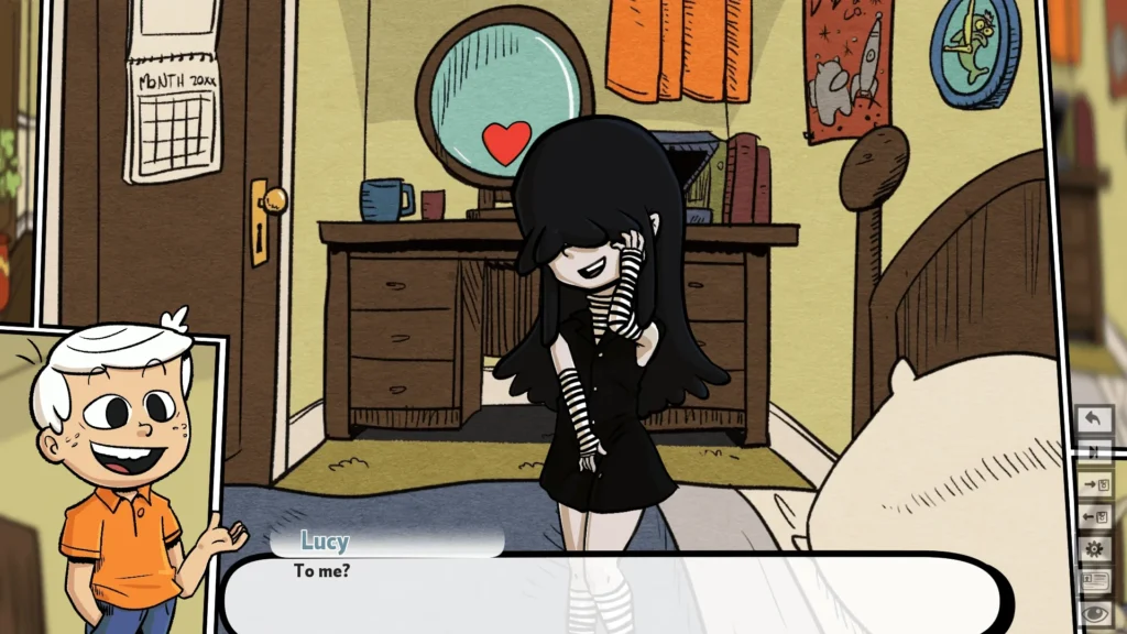 Time & Location | The game progresses through a loose day/night cycle, with characters in different locations. | Finding a character in a private space like their bedroom at night often leads to more personal interactions than in a common area during the day. |